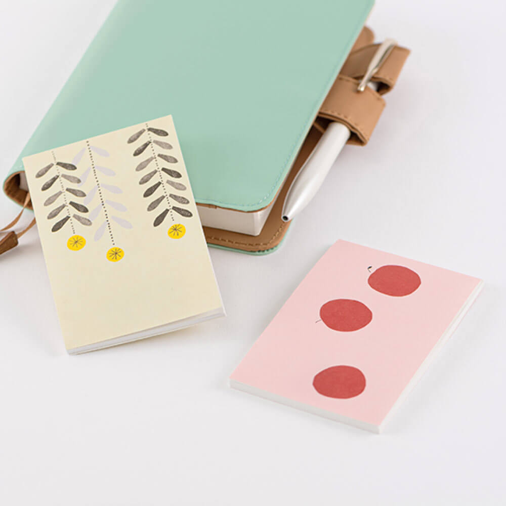 This set of two cute memo pads features illustrations by Naoko Horiguchi, and fits neatly into a techo cover’s pockets for use anytime.