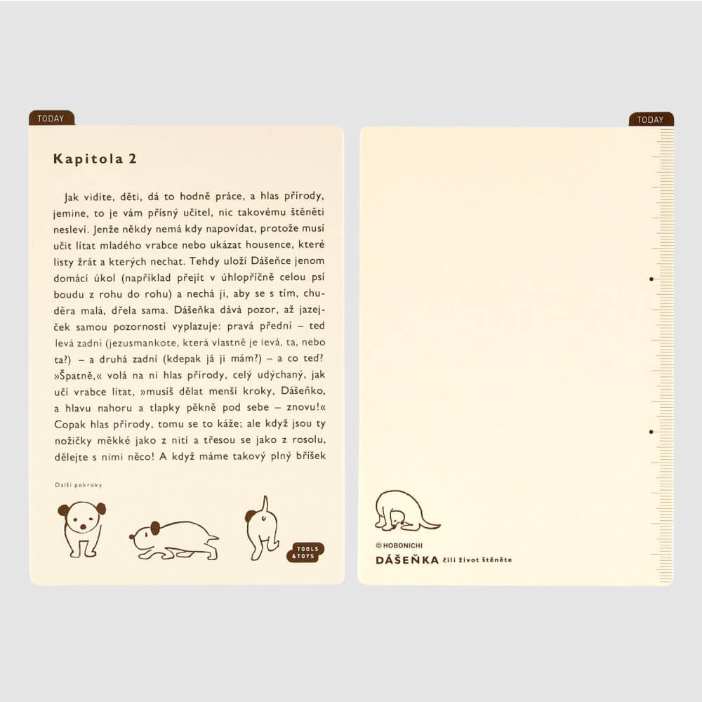 This A6 notepad has 155 pages, so you can use them to your heart’s content. Pages are glued in instead of sewn, making them very easy to rip out as needed. This year’s notepad cover features Dashenka, star of Czech author Karel Capek’s illustrated book Dashenka: The Story of a Puppy.