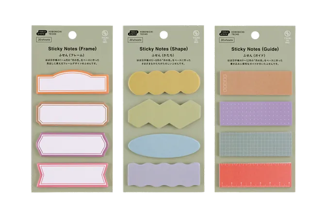 These Sticky Notes are conveniently sized for easy writing and come in three types: Frame, Shape, and Guide.