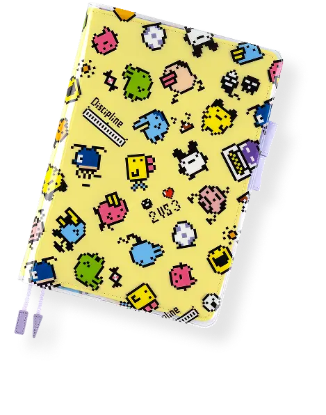 This Hobonichi Techo cover is dotted with lively Tamagotchis, and the Hobonichi Techo Weeks features cute Tamagotchis with unique poses. The see-through stickers included as a bonus with both are also adorable!