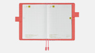 手帳を開くと中は一面のピンクで、