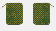 表面の生地(グリーン)が少しずつ擦り切れて、