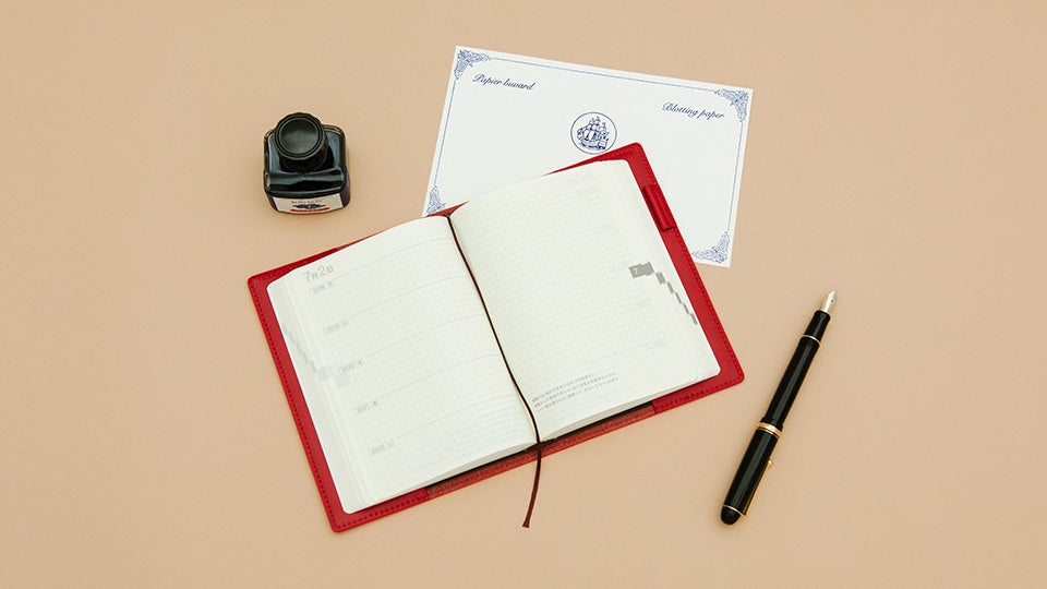 「トモエリバー(手帳用)」の紙は、薄く、なめらかな書き心地が特徴です。ただし、万年筆や水性インクのペンをお使いの場合や、状況によってはにじみや裏うつりが出たり、乾きにくいことがあります。あらかじめ試し書き用紙でお試し頂くか、下敷き、吸い取り紙のご使用をおすすめいたします。