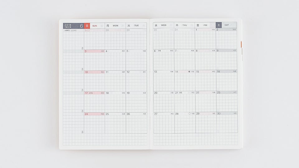 (1月はじまり)[A6サイズ/月曜はじまり・日曜はじまり]
