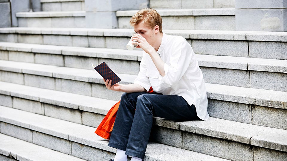 シャツに使われる生地を表紙に仕立てているのが、
