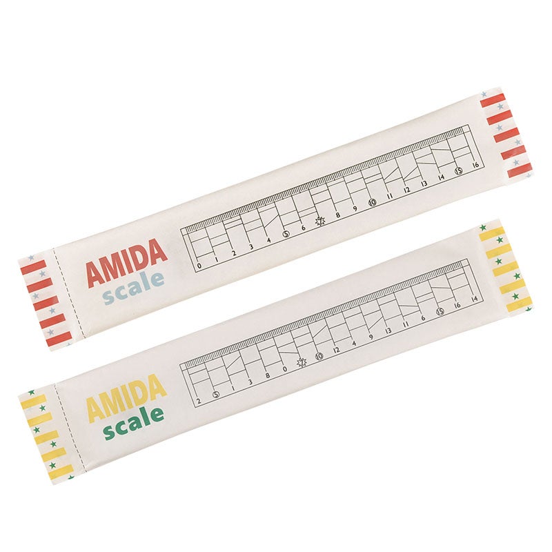目盛りがあみだくじになっている16cmのアクリル定規です。かわいいパッケージ入りです。