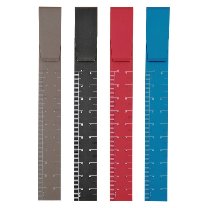 アルミ製の薄くて軽いクリップつき定規です。10cmの長さまではかれます。