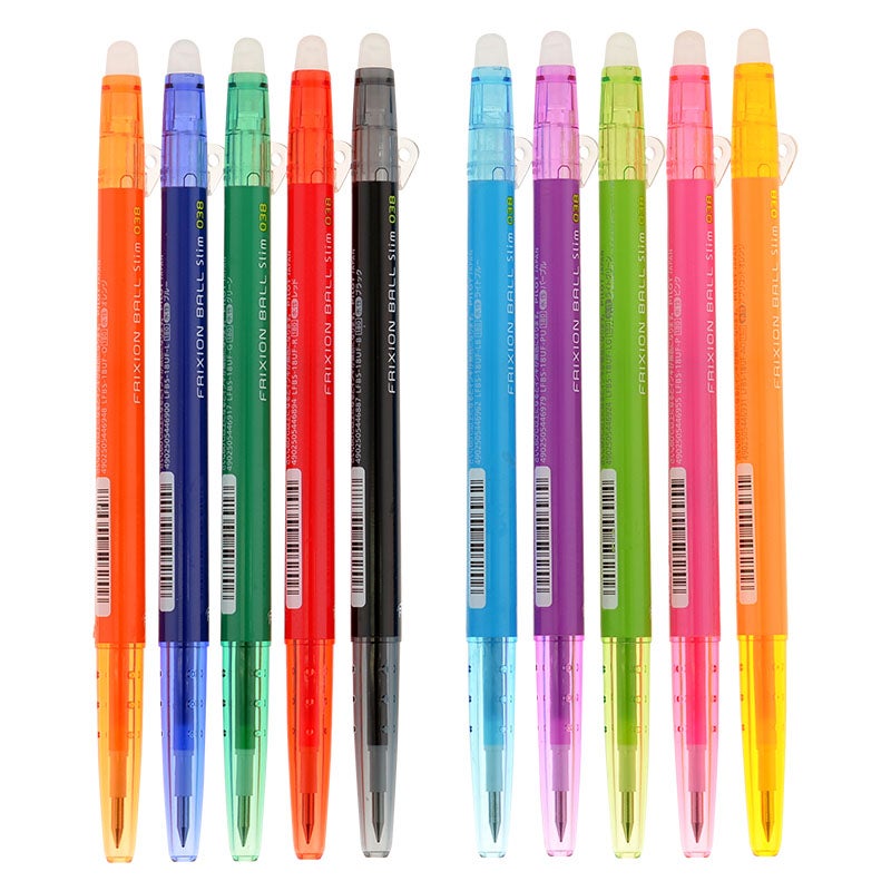 書いた文字をこすって消せるフリクションシリーズの極細ボールペンのセットです。