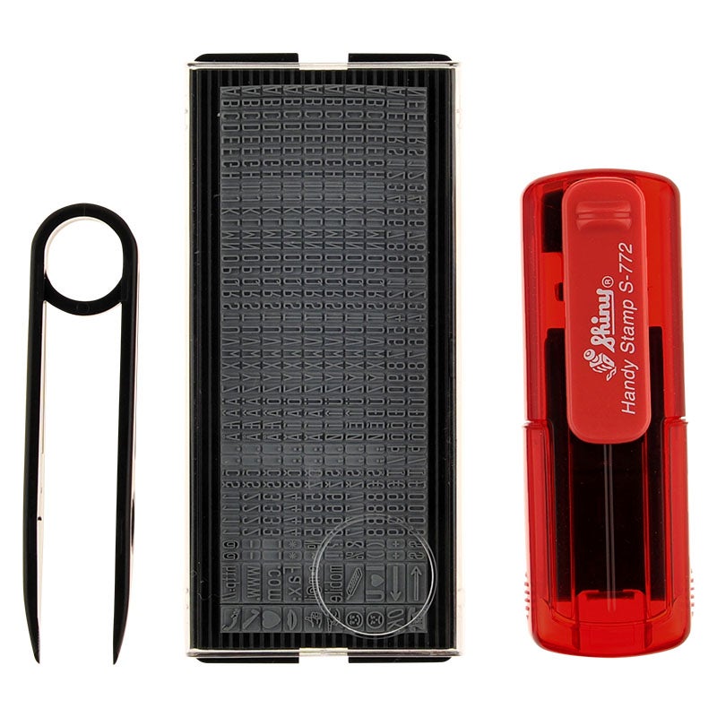 文字のゴム盤を組み合わせてオリジナルのミニスタンプを作れるキットです。