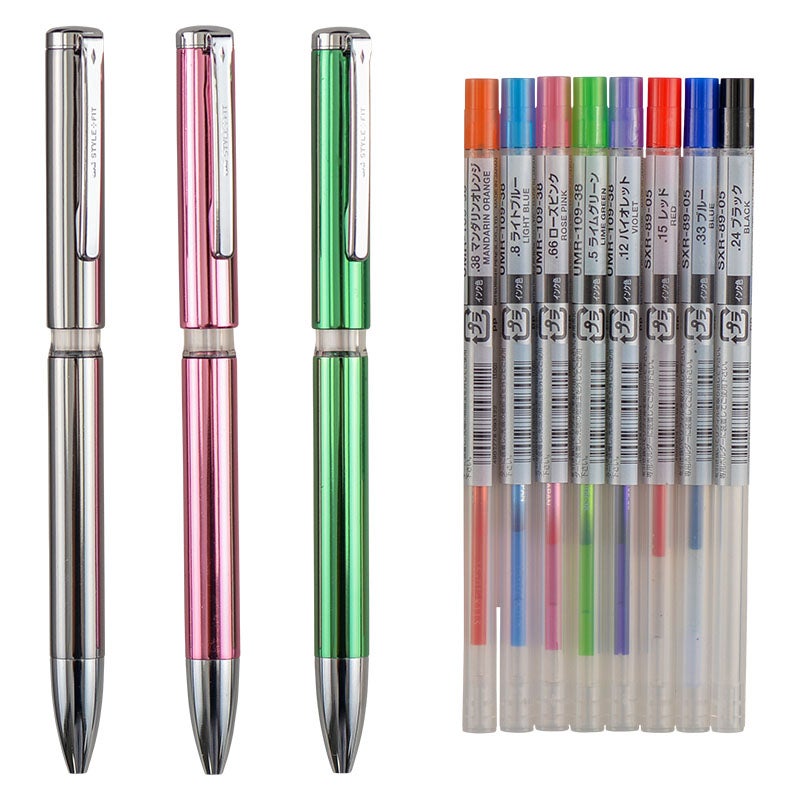 書いた文字を消せるボールペン。0.38mmの細いペン先とスリムなボディを実現しました。