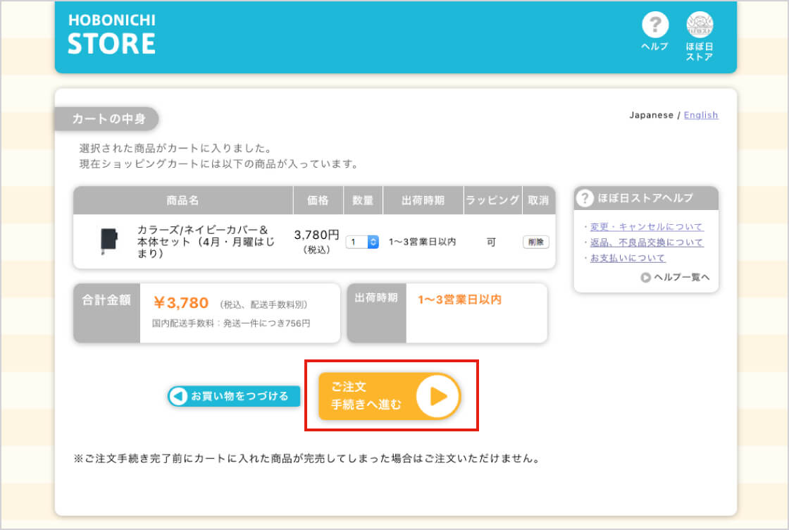「ほぼ日ストアヘルプ お申込し込みの流れ」から