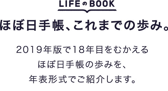 この年、変わったかたちで本体が進化を遂げます。オリジナルとカズンに分冊版の「ほぼ日手帳 avec(アヴェク)」が誕生。1年を「1~6月」「7~12月」の2冊に分けたもので、オリジナルやカズンの手帳をもっと軽く持ちたい人や、いろいろ貼って分厚くなることが気になる人に喜ばれるアイテムとなりました。手帳カバーも引き続きさまざまなものが登場、シリコンカバー「SSACK」やふわふわの「フェイクファー」、中川翔子さんの「マミタス」、石川直樹さんの「HIMALAYA」などがありました。糸井重里がゲームデザインを手がけた「MOTHER」シリーズの手帳もこの年からスタート、毎年の人気シリーズに。そしてこの年、ほぼ日手帳を定義する新しいことば「LIFEのBOOK」を糸井重里が想到。渋谷ロフトでは発売記念イベントとして、21名のかたに聞いた「Life is…」を紹介する展示「Life is…」展がおこなわれました。またPlannerを紹介する英語ページも誕生しました。