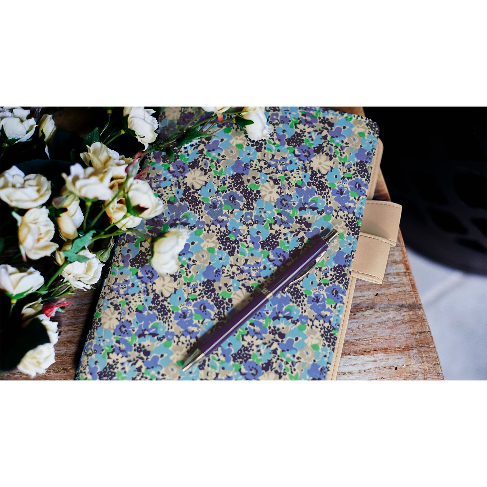 カバーの使いはじめは、ペンホルダー、またはバタフライストッパーの生地や革がかたいため、ペンが抜きさししづらくなっています。