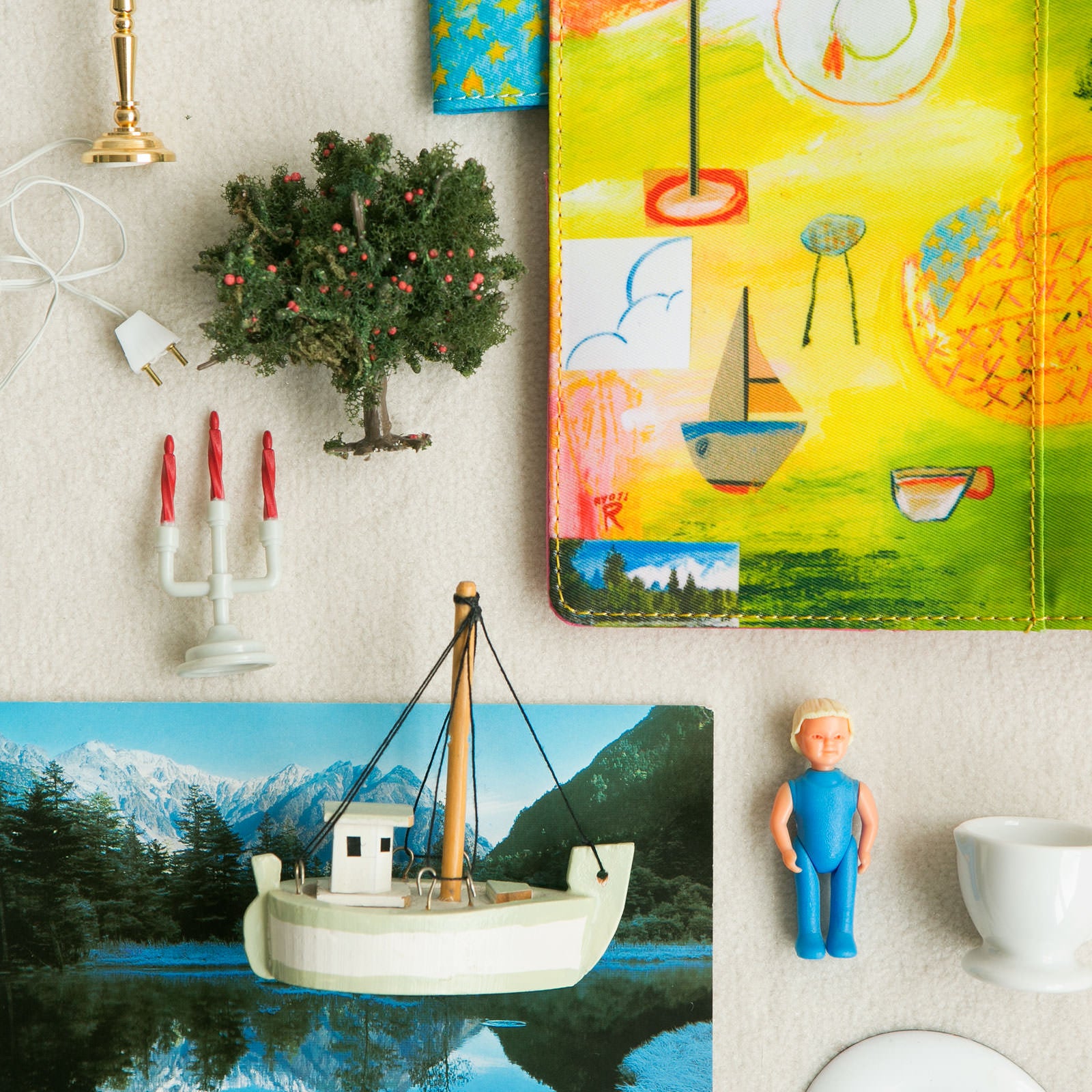 たとえば、裏側左下のヨットや木などは