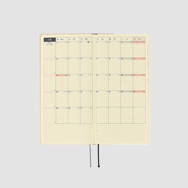 | 基本仕様 | 掲載期間:2019年1月~2019年12月 週の区切り:月曜はじまり ページ構成:週間ページ/月間ページ/おまけページ |