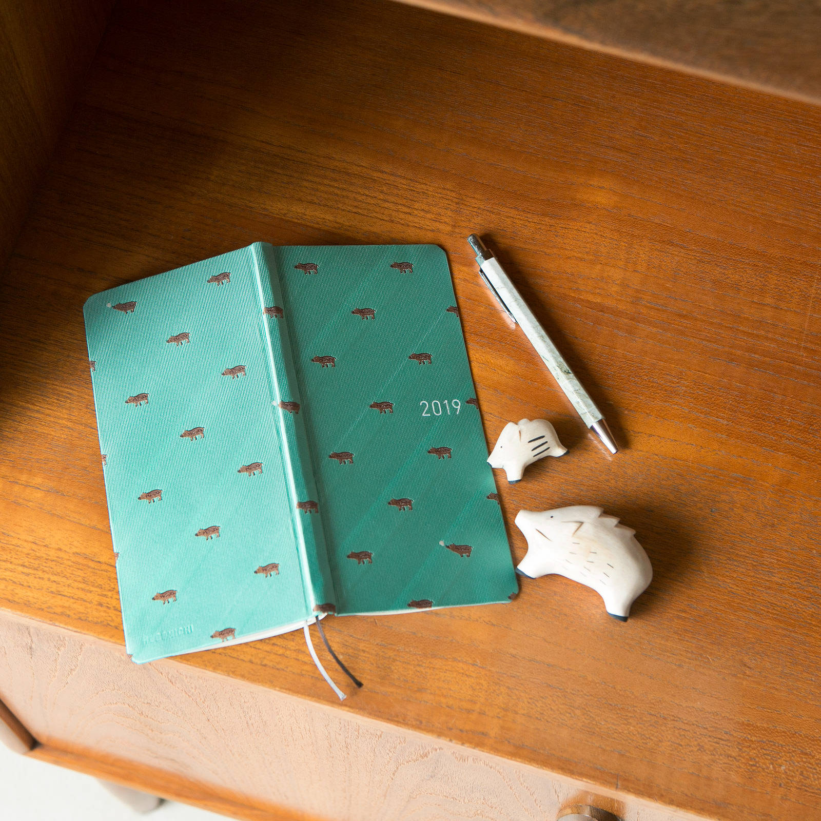 2019年の干支でもあるイノシシ柄の手帳は、