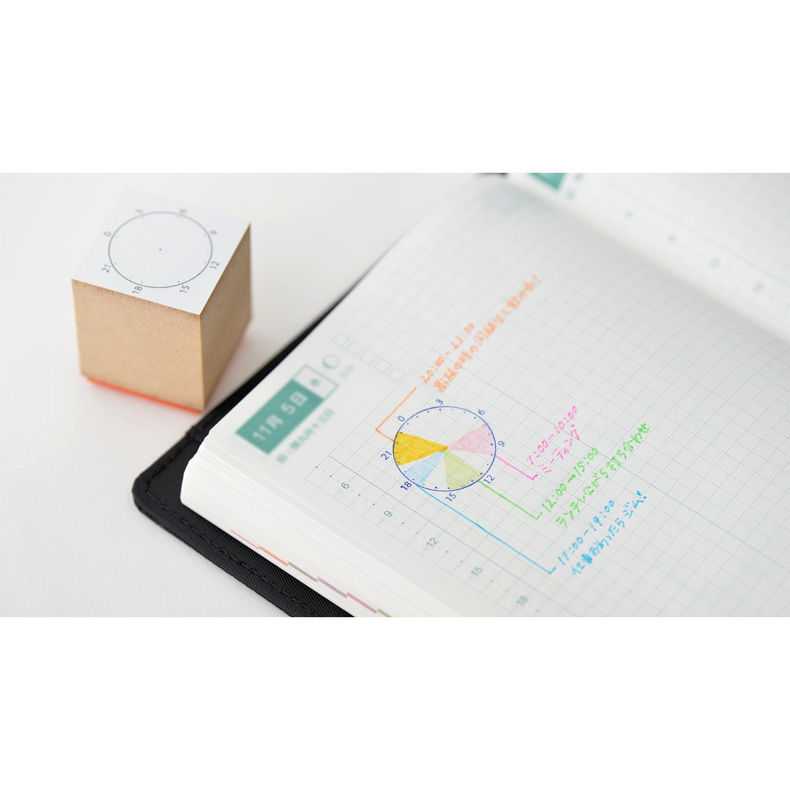 一日の行動を、色を塗り分けて記録したりと、