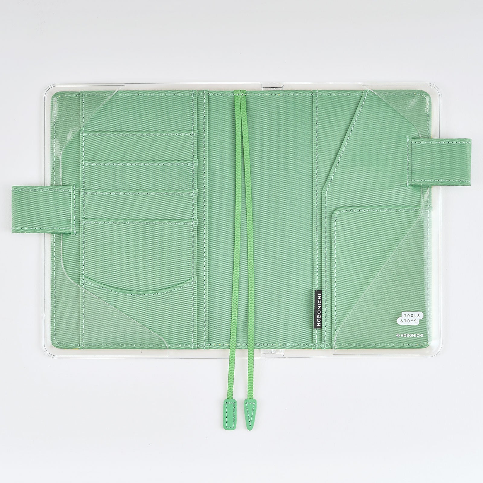 「カバー・オン・カバー」には、装着をした状態でも、手帳カバー外側にあるポケットを使用できるチャック付きのスリットがついています。