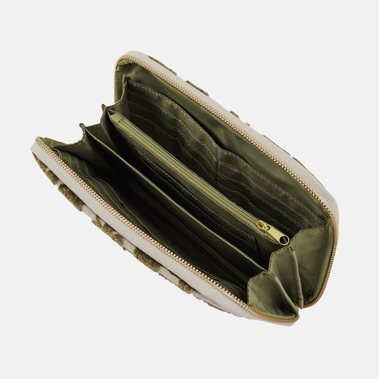 外側のポケットと本体の柄の合わせは行っていません。あらかじめご了承ください。