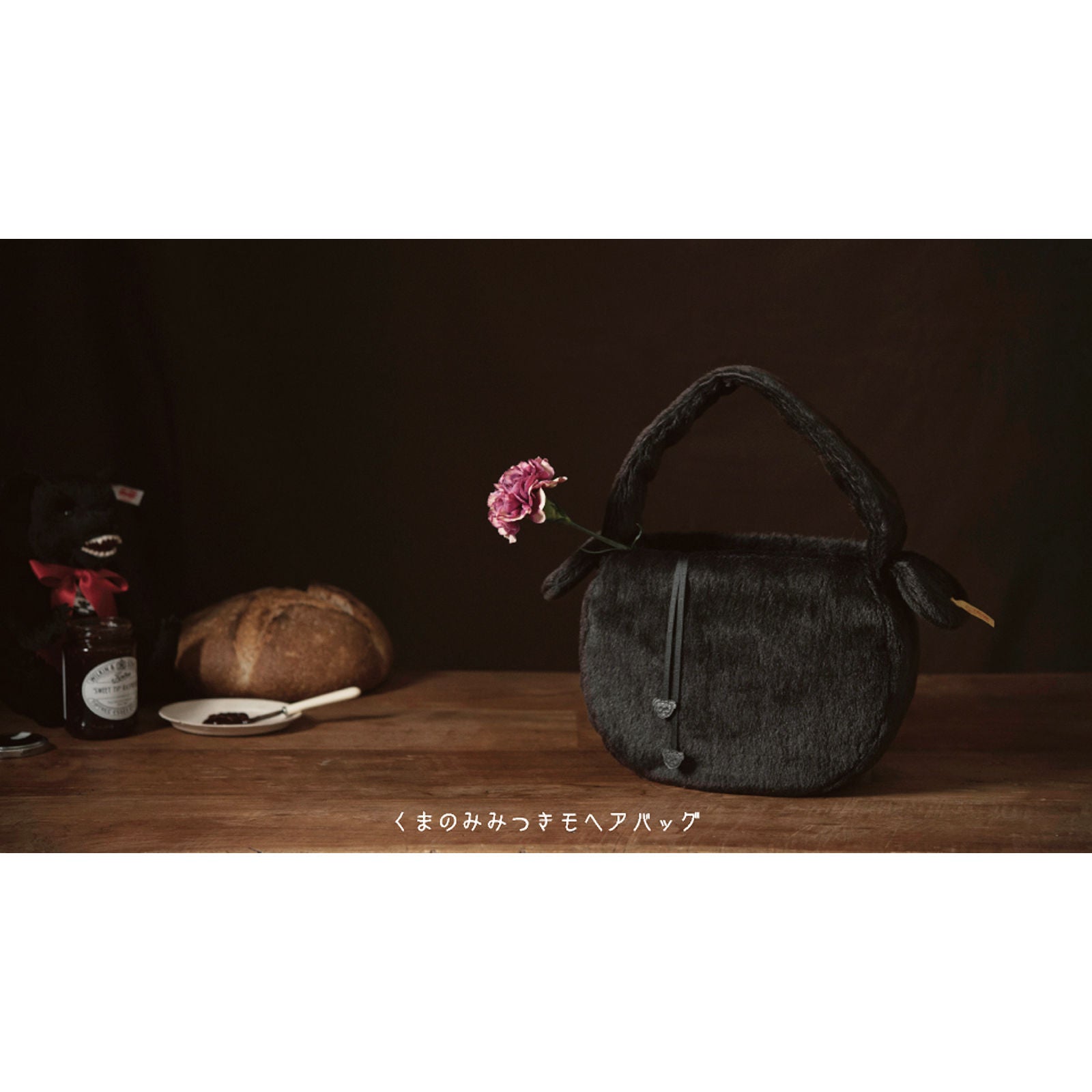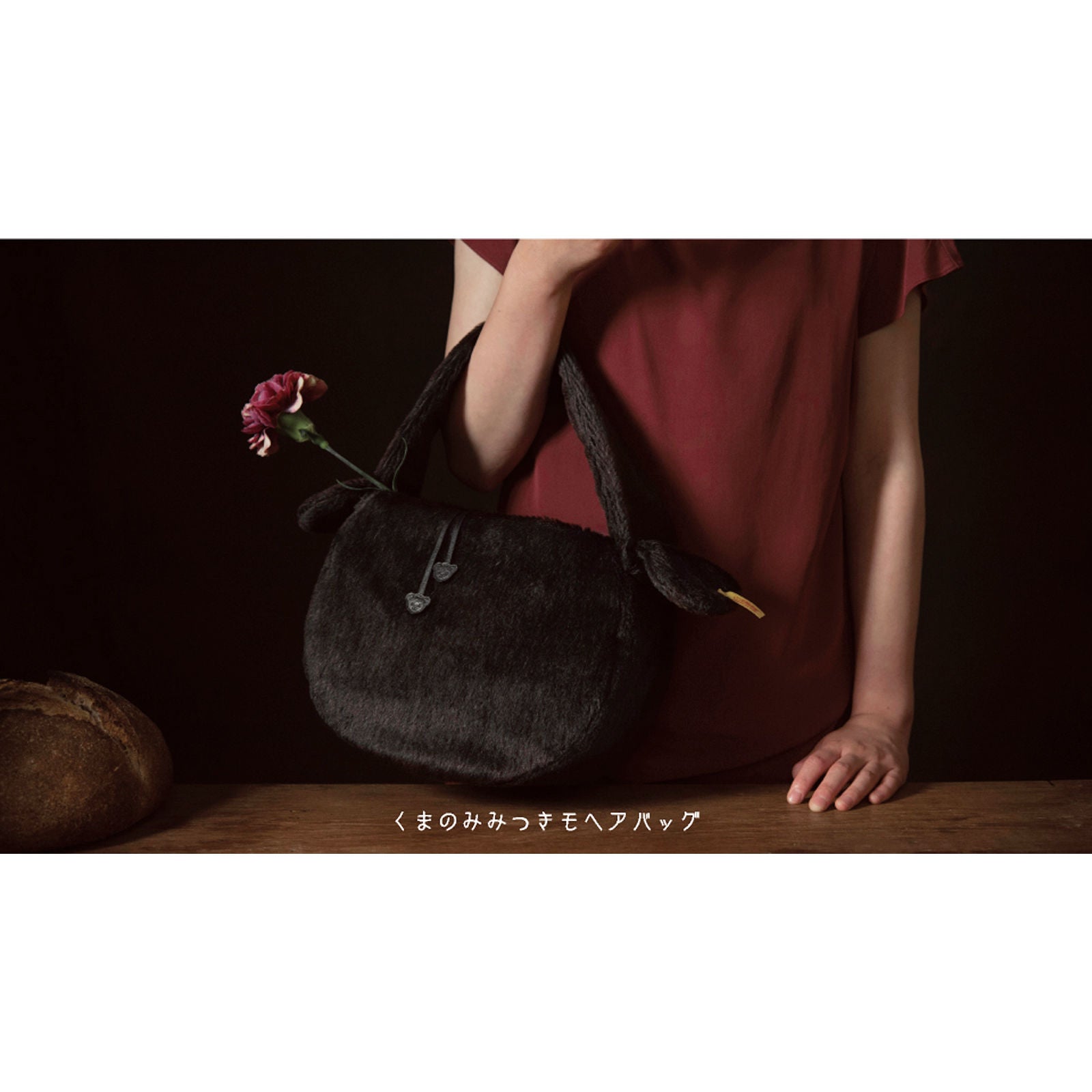 | 主な素材 | 表側 :モヘア/コットン/ポリエステル 内側 :ポリエステル 口ひも :ポリエステル チャーム :牛革 ボタン :真鍮 タグ :ポリエステル |