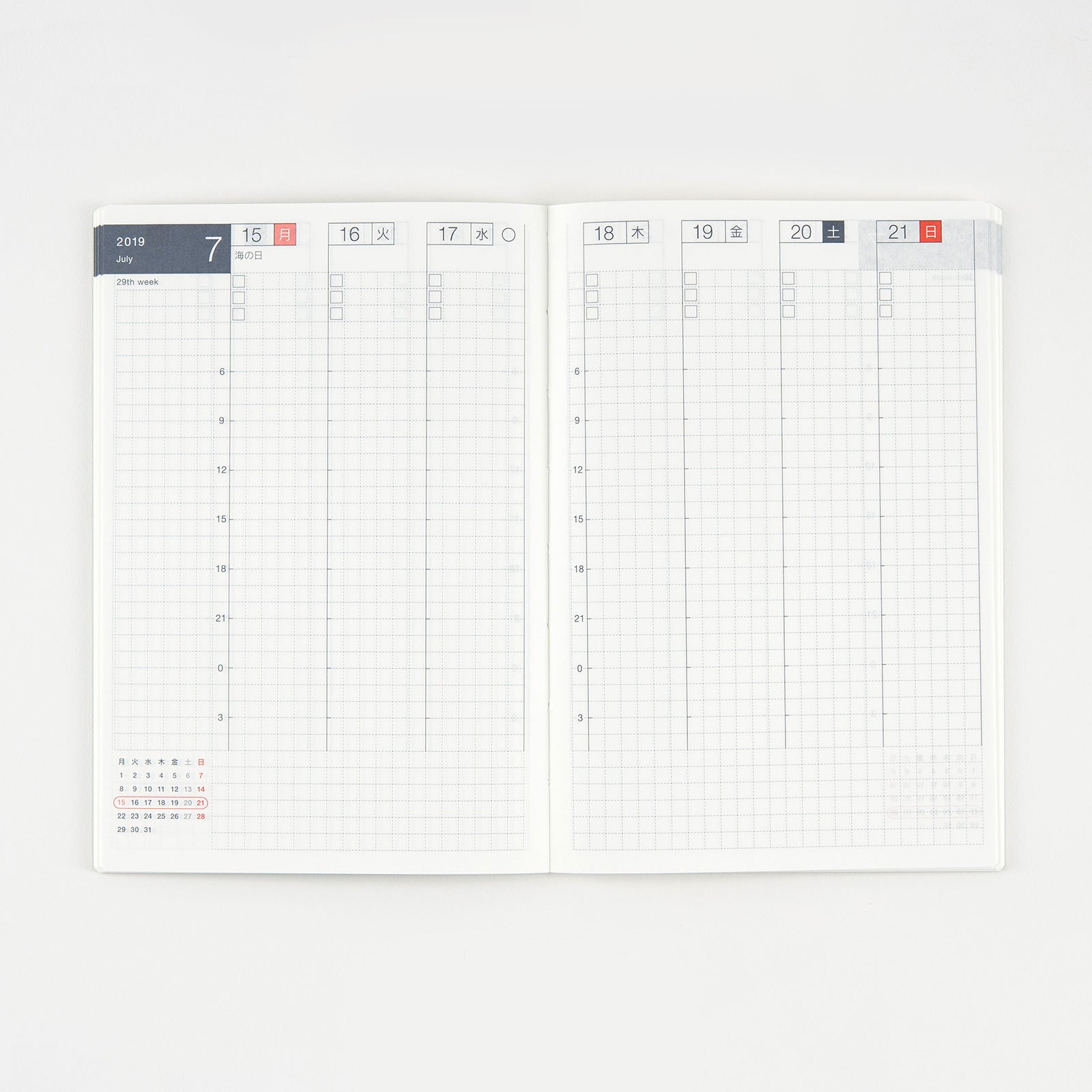 見開きで週の予定をパッと見渡せる、週間手帳です。