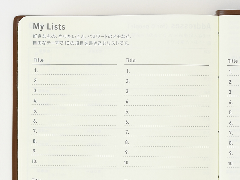 自由なテーマで8つのリストを作れます。1テーマに10項目ずつ書きこめます。