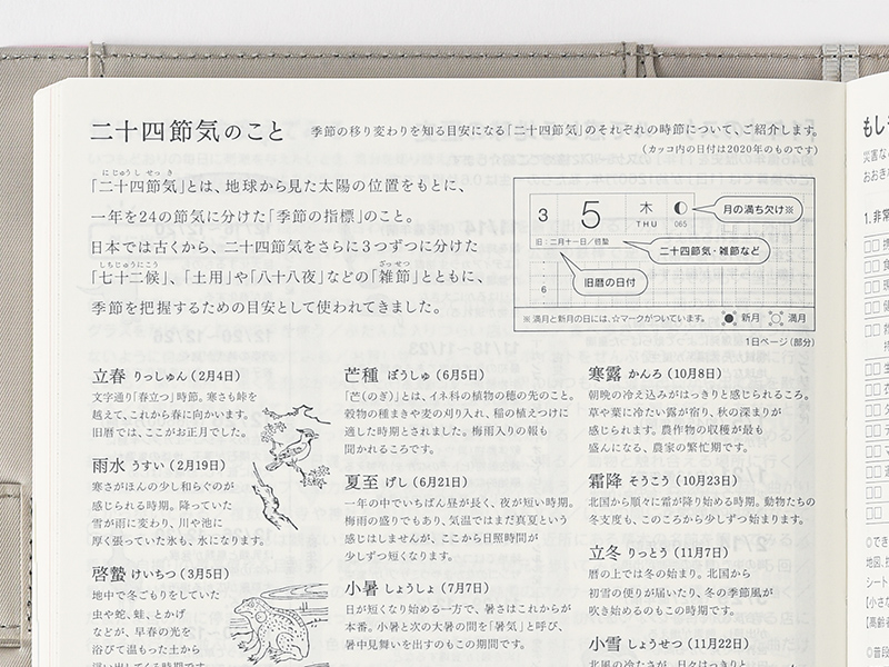 「立春」や「冬至」など、季節の移り変わりを知る目安になる「二十四節気」について解説しています。