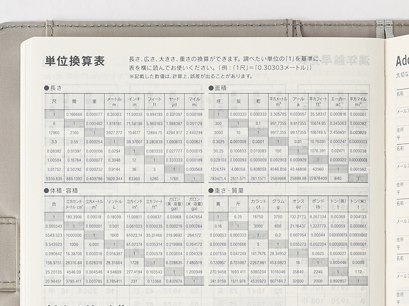 長さ、広さ、大きさ、重さの単位を別の単位に換算したいときに役立つ一覧表です。