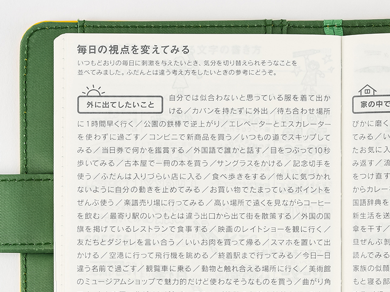 いつもどおりの毎日に刺激を与えたいとき、気分を切り替えられそうなことを並べてみました。ふだんとは違う考え方をしたいときの参考にどうぞ。
