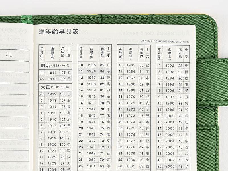 満年齢と十二支が、ひと目でわかる早見表。満年齢0歳から108歳まで掲載しています。2020年の干支である「子」の行は背景に色を入れ、年男と年女がすぐわかるようにしました。