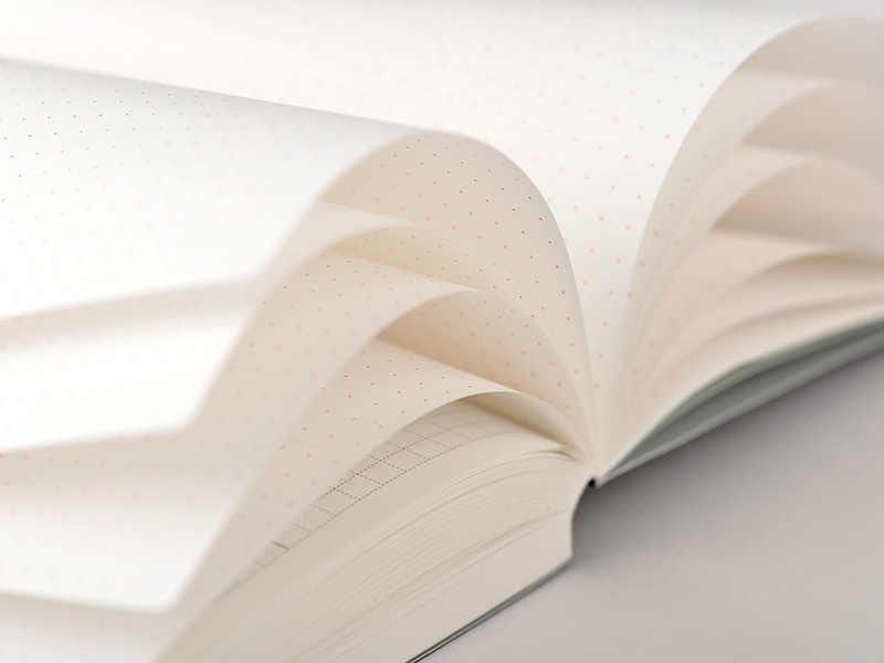 「糸かがり製本」という綴じ方を採用。手で押さえなくてもフラットに180度開きます。