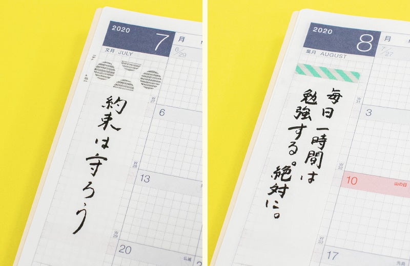かきぞめ気分で目標や好きな言葉を書いて手帳に貼ったり、