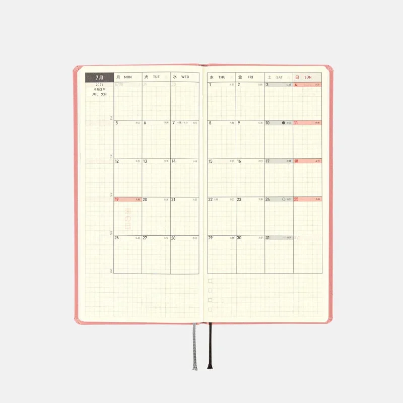 | 祝日表記について | 2021年springの本体は、2020年9月現在の情報を元に製作しており、 「海の日」「山の日」「スポーツの日」の祝日移動は反映されておりません。 ご不便おかけし申し訳ございませんが、ご了承ください。 |