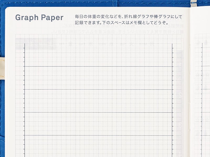 体重の変化や目標に向けての記録などを残すのに便利なグラフ用紙です。横軸は31目盛りで、1ヵ月の記録にも便利です。下部分はメモスペースとしてお使いいただけます。