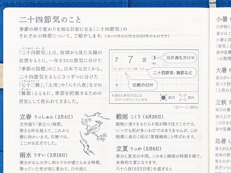 「立春」や「冬至」など、季節の移り変わりを知る目安になる「二十四節気」について解説しています。