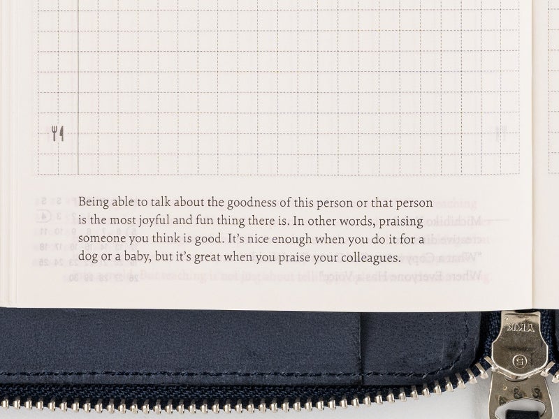 「ほぼ日刊イトイ新聞」のコンテンツからPlannerのために厳選した言葉や、 「ARTS&SCIENCE」のオーナーであるソニア パークさんの言葉などを、見開きにひとつ、英語で掲載しています。