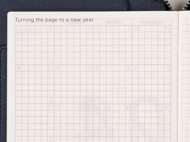 手帳を使いはじめるときのウォーミングアップ用ページです。前の年の出来事を振り返ったり、新年の決意を書いたり、古い手帳から引き継ぐ内容を記したりなど、自由にお使いください。