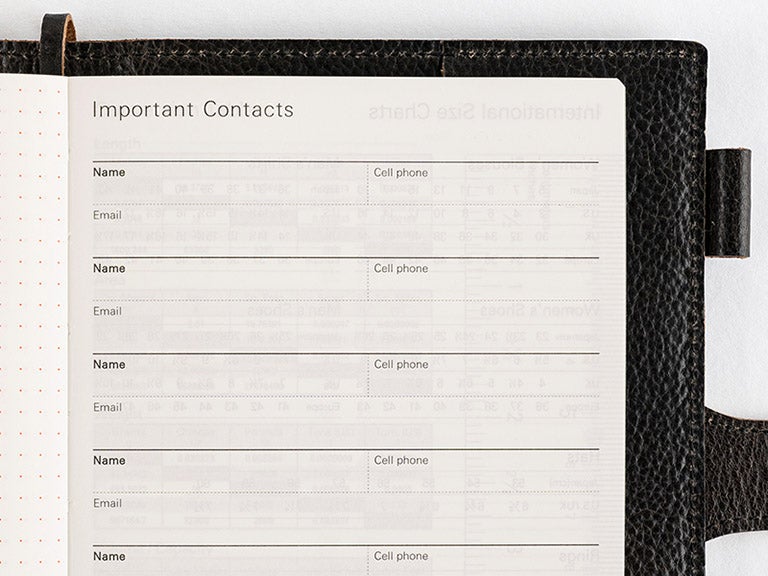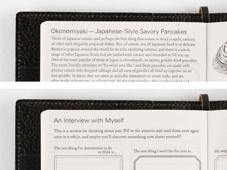 本体にはうすくて軽く、丈夫な手帳専用紙