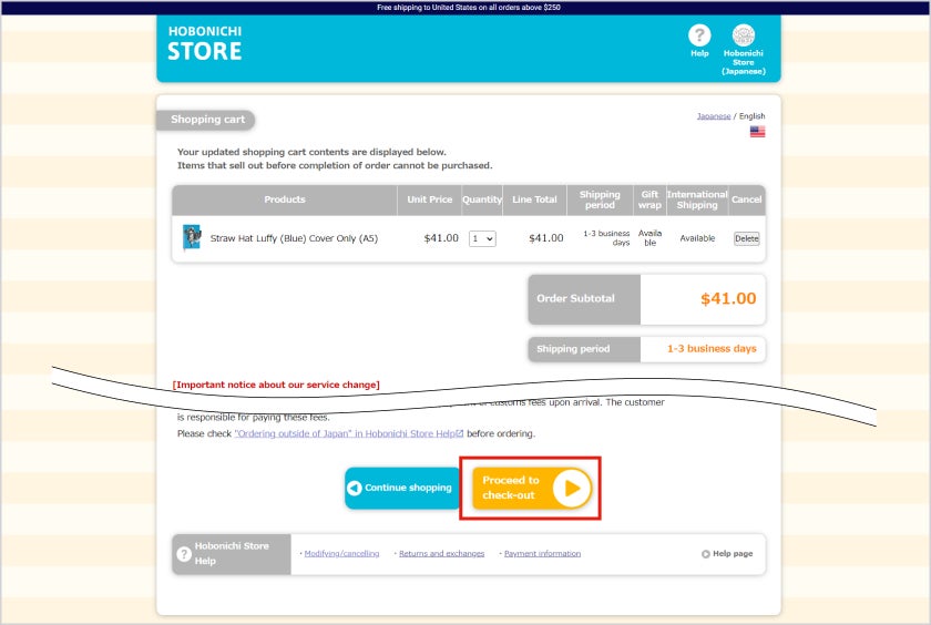 「ほぼ日ストアヘルプ 海外:お申し込みの流れ(初めての方)」から