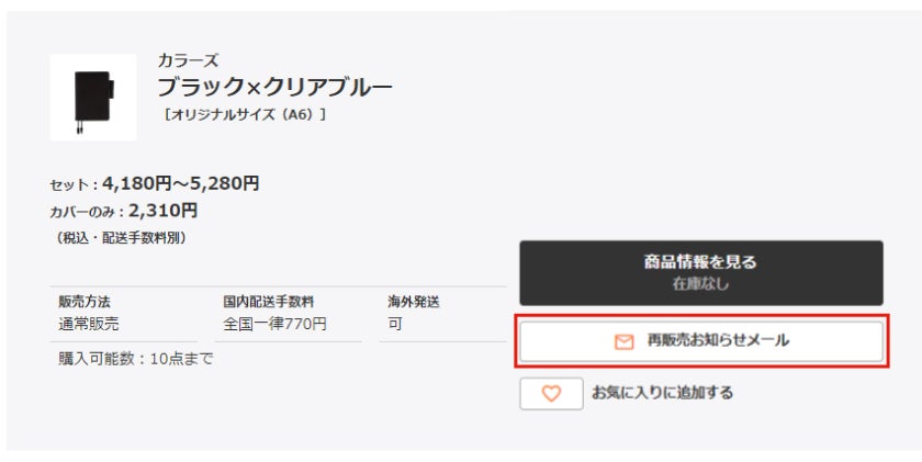 「再販売お知らせメール」にご登録いただくと、