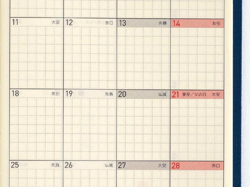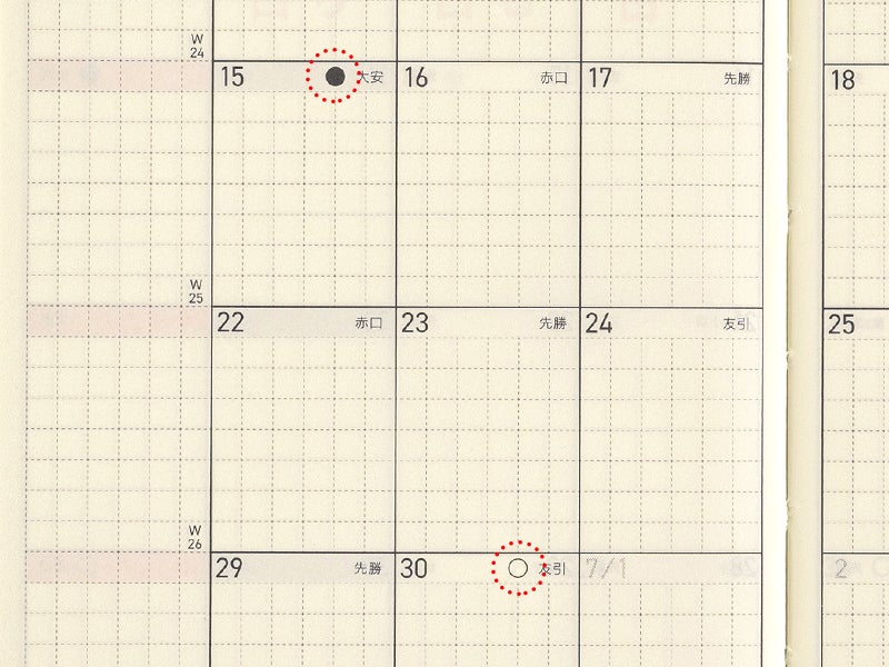 「大安」や「仏滅」といった「六曜」も記載しています。