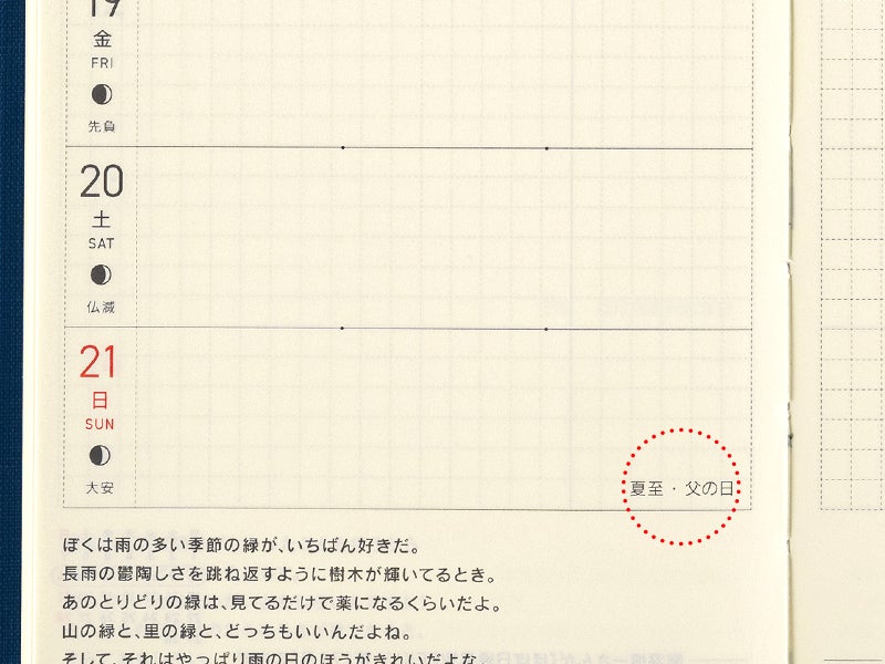 祝日や日本の休日、「二十四節気」「雑節」の掲載はございません。