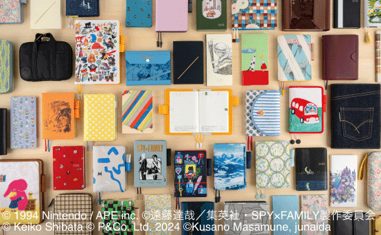 好みや用途に合わせ、ひとりでも多くの方に手にとっていただけるよう、2025年はさらにラインナップを拡充しました。カラーズなどの定番カバーはもちろん、『ONE PIECE magazine』『SPY×FAMILY』『パディントン™』『草野マサムネ×junaida/ひみつストレンジャー』など多彩なコラボ、そして昨年につづき柴田ケイコさんや北岸由美さん、久保田寛子さんといったアーティストのみなさんとの制作も、写真家の石川直樹さんらを迎えさらに拡大。インドのブロックプリントやイタリアのBONOTTO(ボノット)社の生地を使ったカバーなど、ファブリックシリーズも個性的なラインナップを多数そろえました。2023年に誕生した、新しいスタイルの1日1ページ手帳「HON(ほん)」のデザインもさらにバリエーションが増えています。
