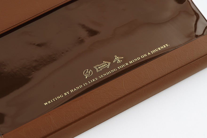 フラップ部分に使用しているブラウンの生地には