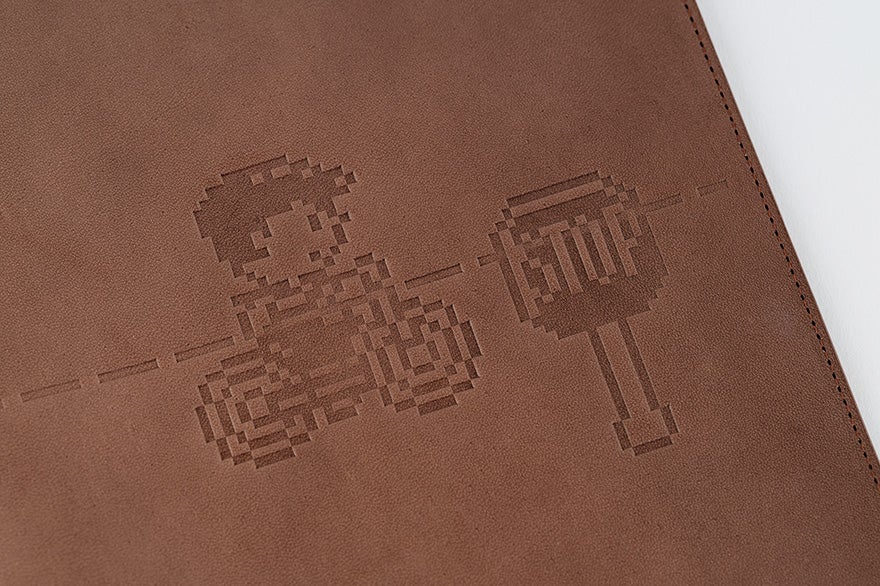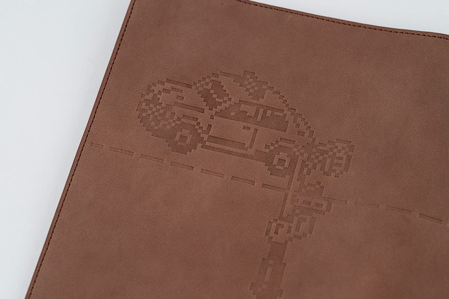 レザーの表面に型押しで表現したカバー。