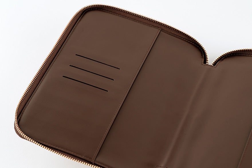 このカバーのペンフックは、ペンのクリップ部分を差し込んで使用するものです。ペンのサイズや形状によっては、ジッパーを開閉しづらくなることがあります。