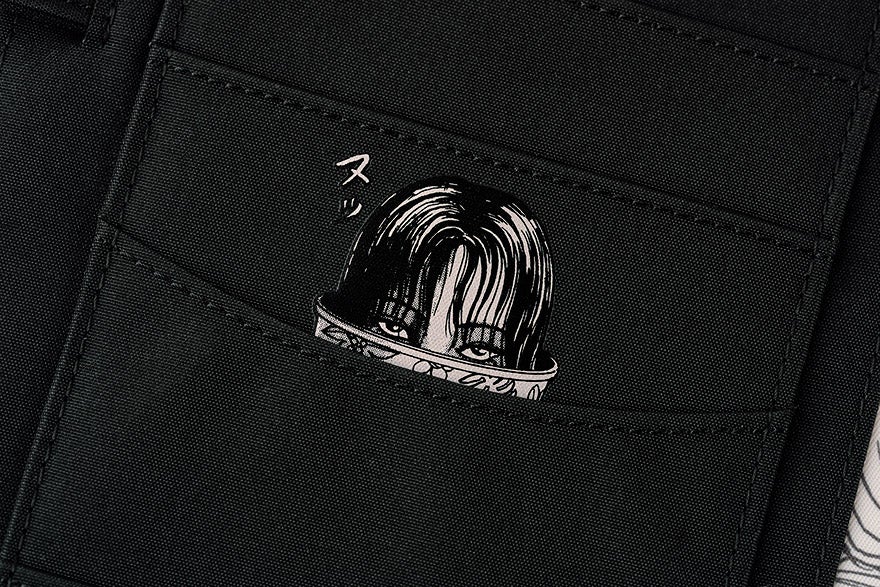 ポケットからヌッと顔を出すのは、人面疽となった富江。