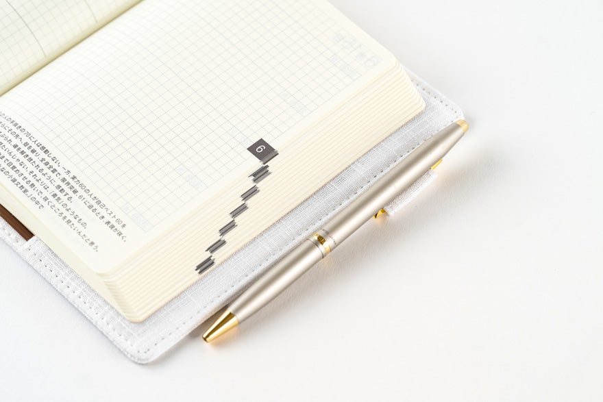 | 紙質・製本 | 薄くて軽く、なめらかな書き心地のトモエリバー(手帳専用紙)/糸かがり製本 |