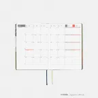| 記載される内容 | 日番号/週番号(月間カレンダーに記載)/月の満ち欠け(1日ページ全ページに記載、月間カレンダーに満月と新月のみ記載) |