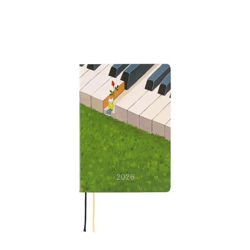 | 1日ページ | 2026年1月1日〜12月31日(全377ページ) *各月のはじめに、その月のことをまとめて書ける扉ページ(1ページ)があります。 *すべてのページに「日々の言葉」を掲載(見開きに1つ)。 *右ページに「ミニカレンダー」を掲載(月曜はじまり)。 *このほか、1日ページのはじめに、自由に使える「Turning the page to a new year」(2ページ)があります。 |